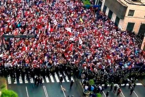A 3 de janeiro, a classe dominante, depois de semanas denunciando "as ações de grupos terroristas", organizou mobilizações "pela paz" e "contra a violência" tentando agrupar as bases da contra-revolução. O resultado foi um fracasso terrível. A greve por tempo indeterminado contra o golpe e as manifestações de massas atingiram um nível superior, experimentando um salto qualitativo após o brutal assassinato de 25 pessoas em Juliaca (Puno). A força do levantamento foi tal que a raiva da população materializou-se numa marcha sobre Lima e em manter a greve nacional até a vitória.